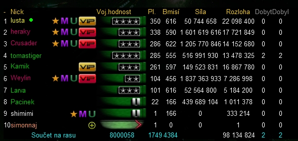 Výsledky věků