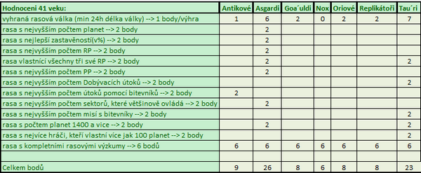 Tabulka s výslednými body: