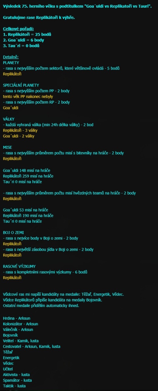 Výsledky věků